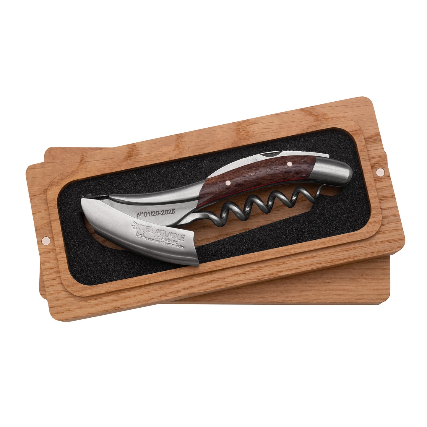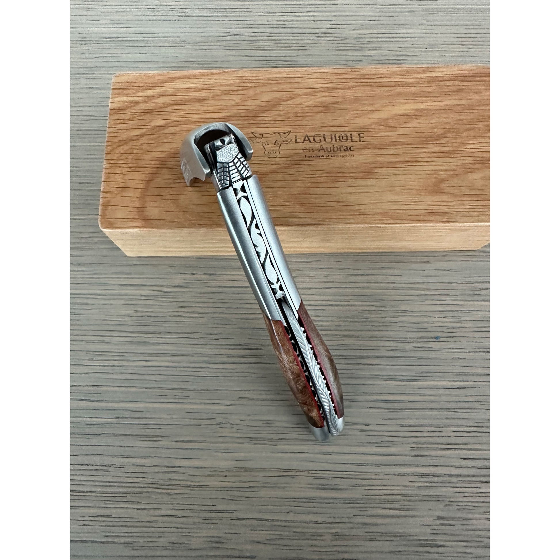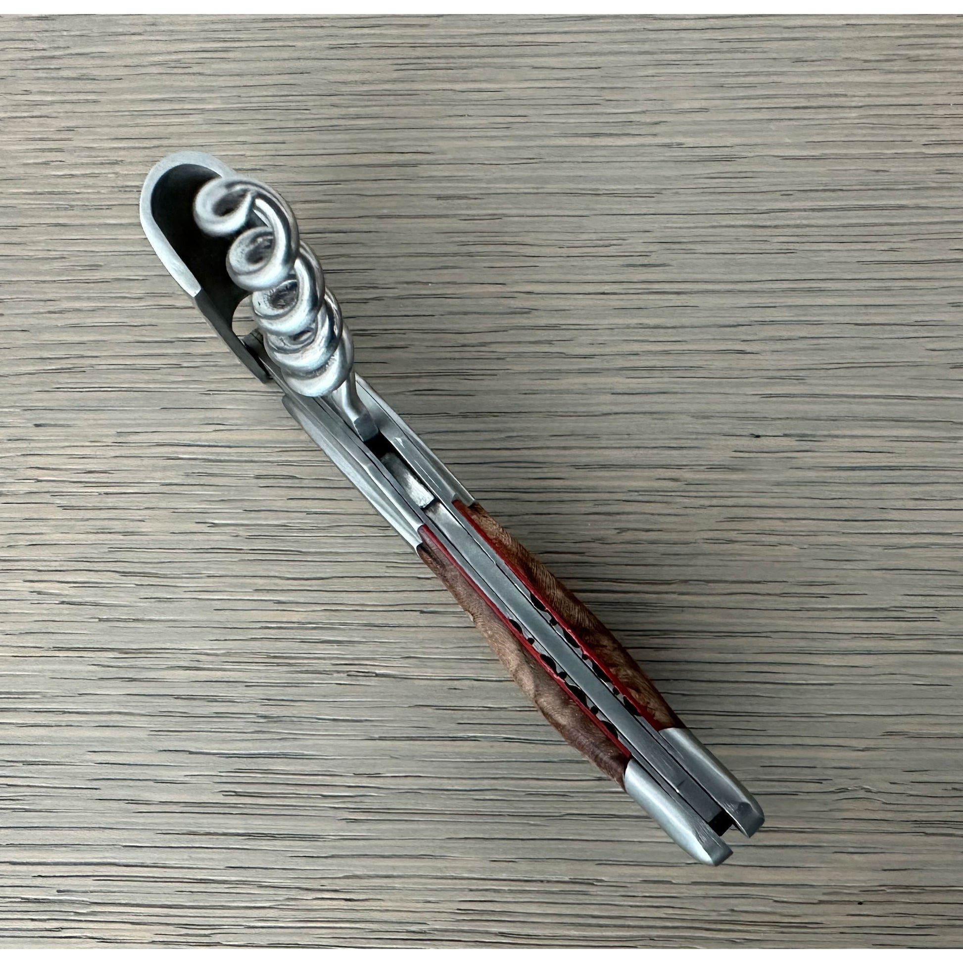 Handcrafted Sommelier Special Edition Numbered Waiter's Corkscrew with Grapevine Wood Handle and Red Inlay by Laguiole en Aubrac