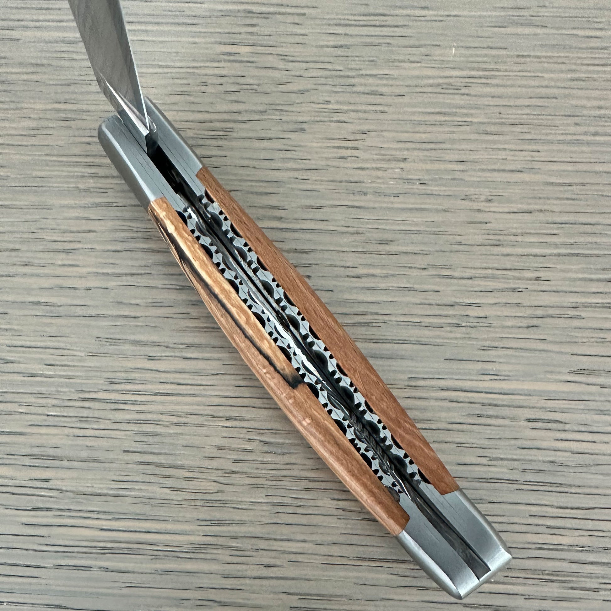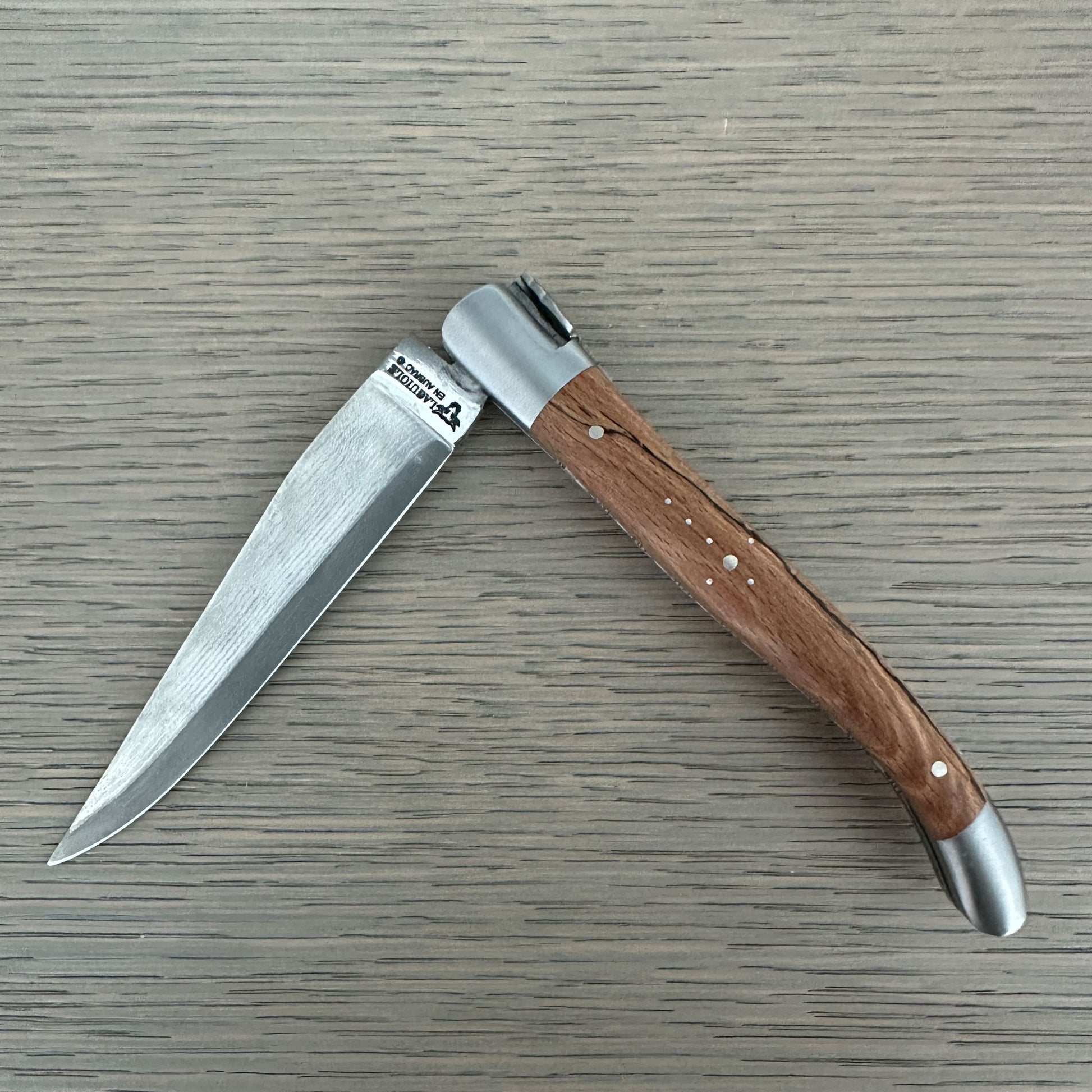 Laguiole en Aubrac Handcrafted Damascus Double Plated Multipurpose Knife with Shiny Bolsters, Aubrac Wood Handle, 4.75 นิ้ว