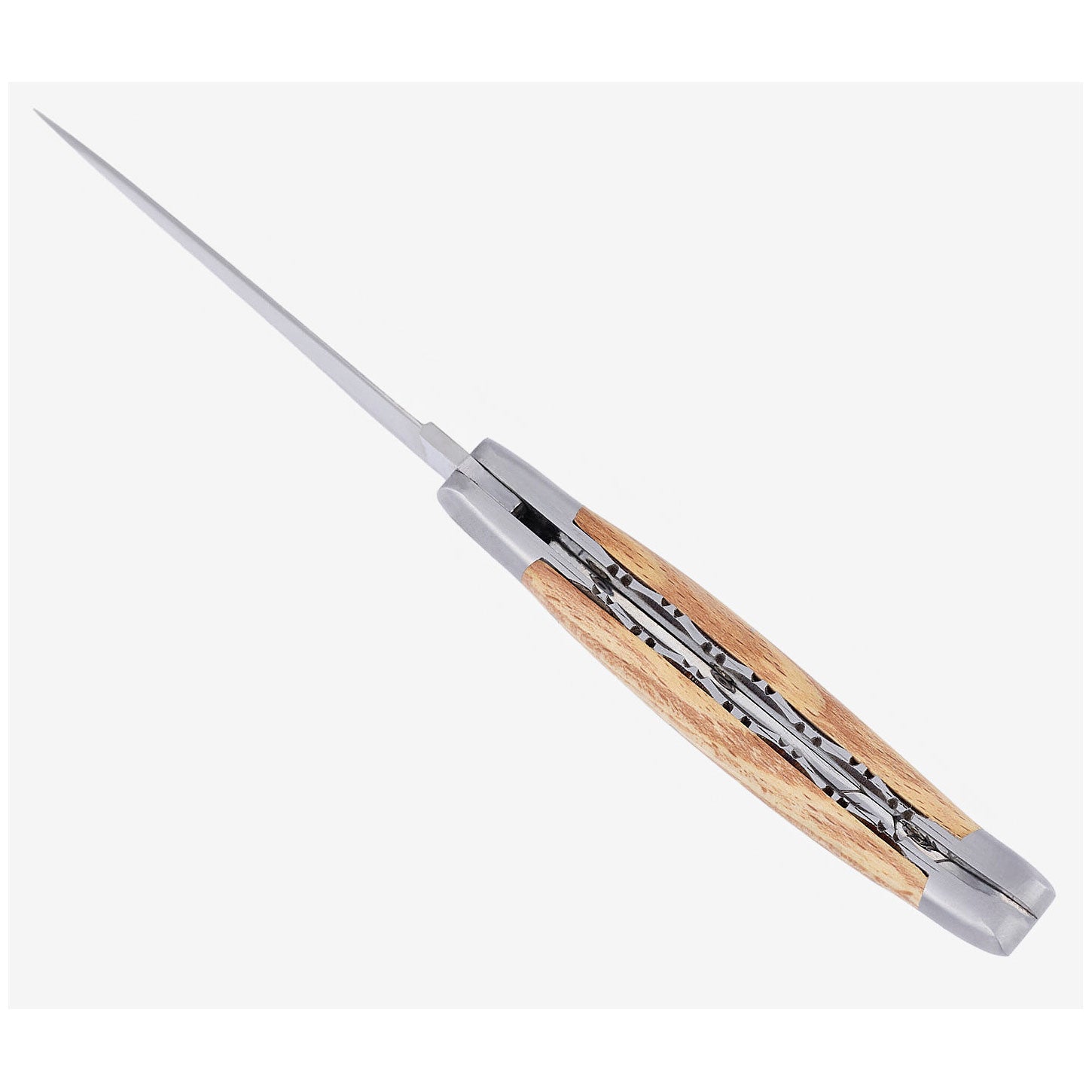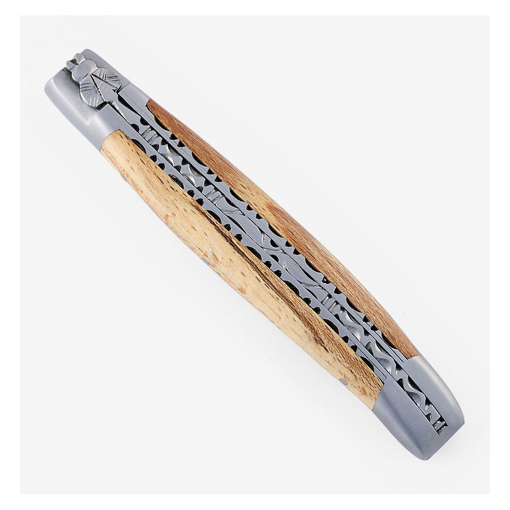- มีดพับมีหมอนข้างสแตนเลสเงาและด้ามไม้บีช Aubrac