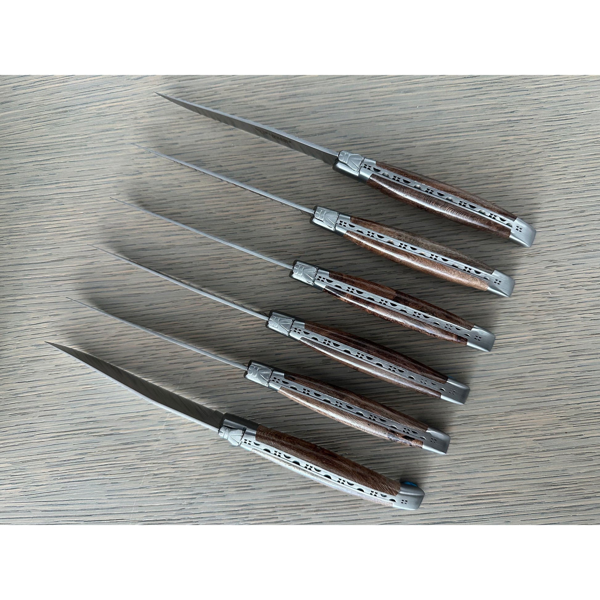 Laguiole en Aubrac Luxury Steak/Table Knives 6-Piece Set With Grapevine Wood Handle
