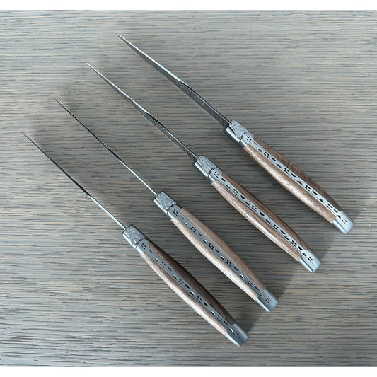 Laguiole en Aubrac 手工制作的 4 件式牛排刀套装,带桦木手柄,拉丝枕垫
