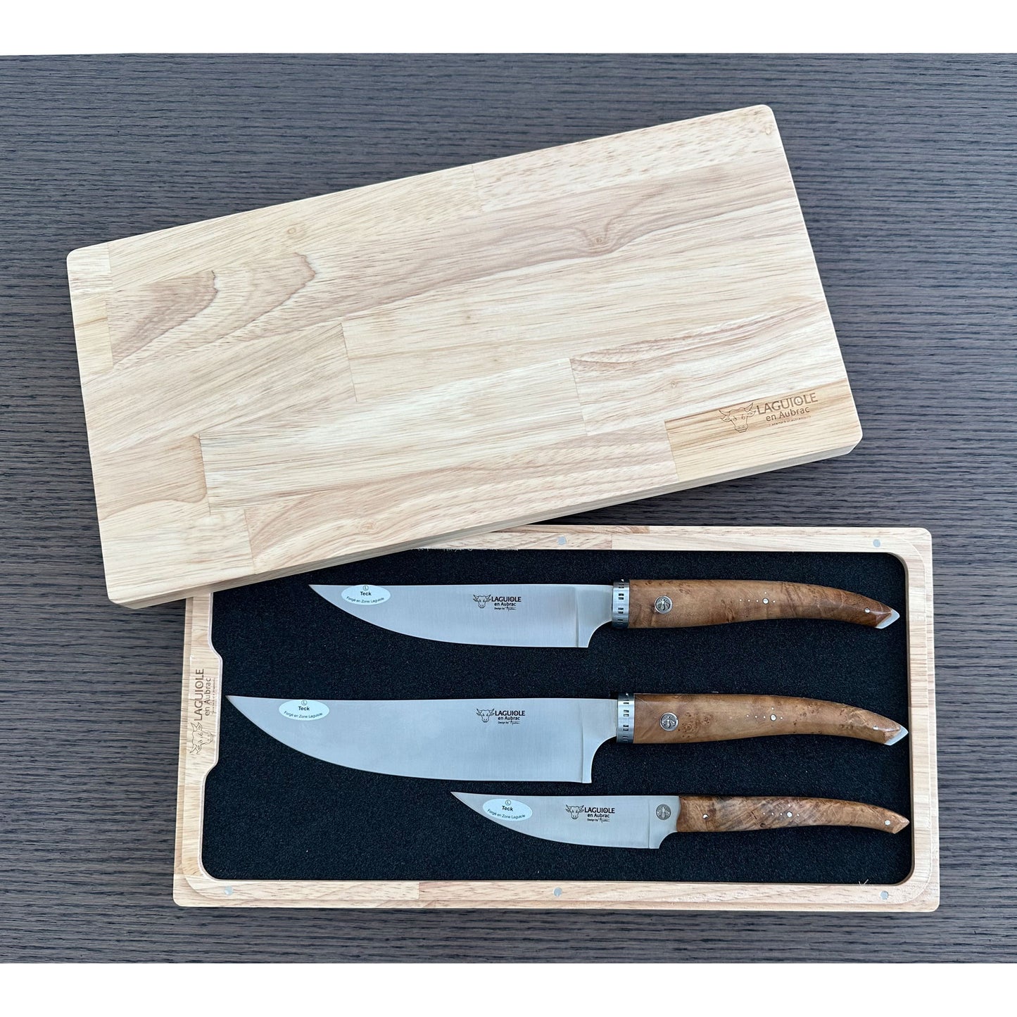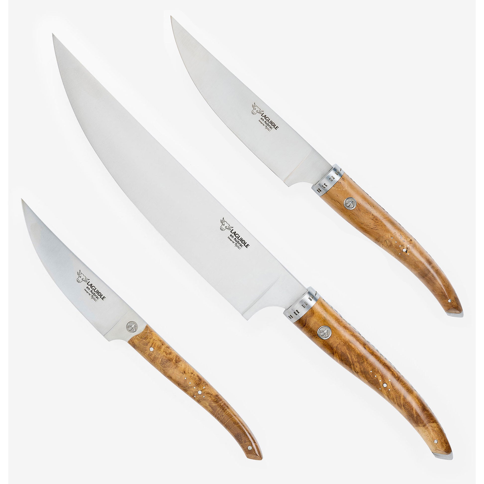 Laguiole en Aubrac 手工制作的 3 件套厨房刀套装,带柚木手柄